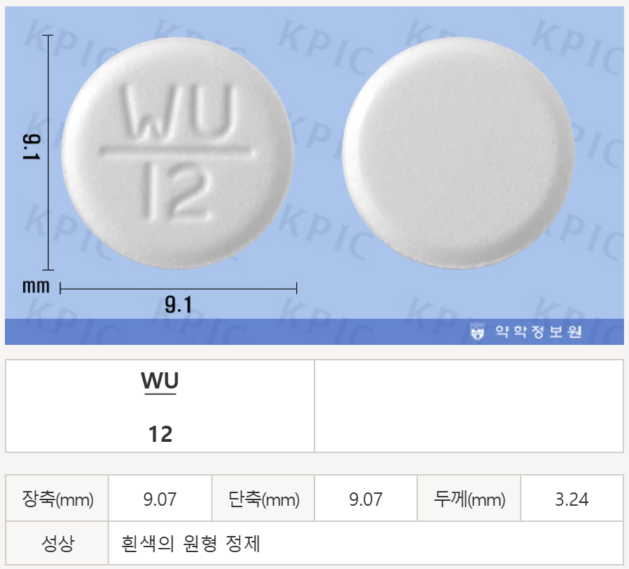 - 성상 : 흰색의 원형 정제